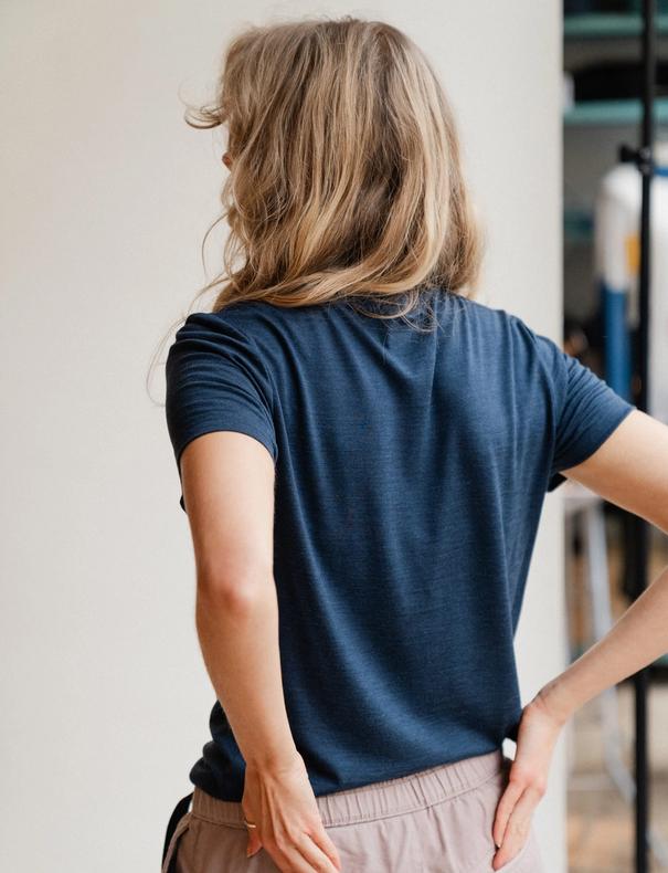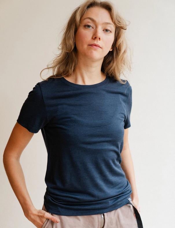 T-skjorte i økologisk ull og silke. Én t-skjorte til alt? Ja - bruk den på fjellet, i byen, på jobb eller til fest. Det følger med én gratis reparasjon, slik at den kan brukes og elskes i mange år.