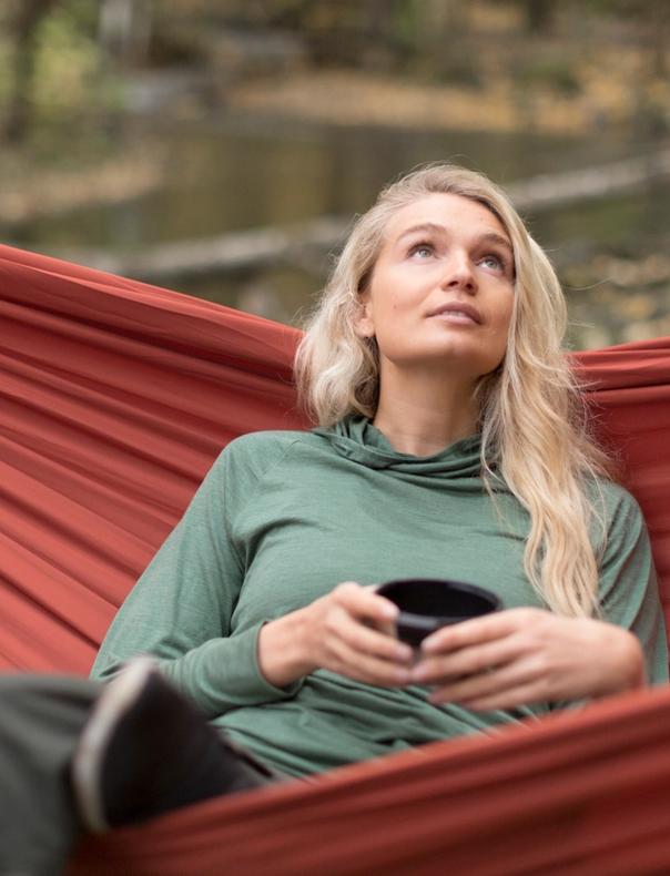 Light hoodie with a high neck and snug hood. Design and functionality for both urban and wild adventures.