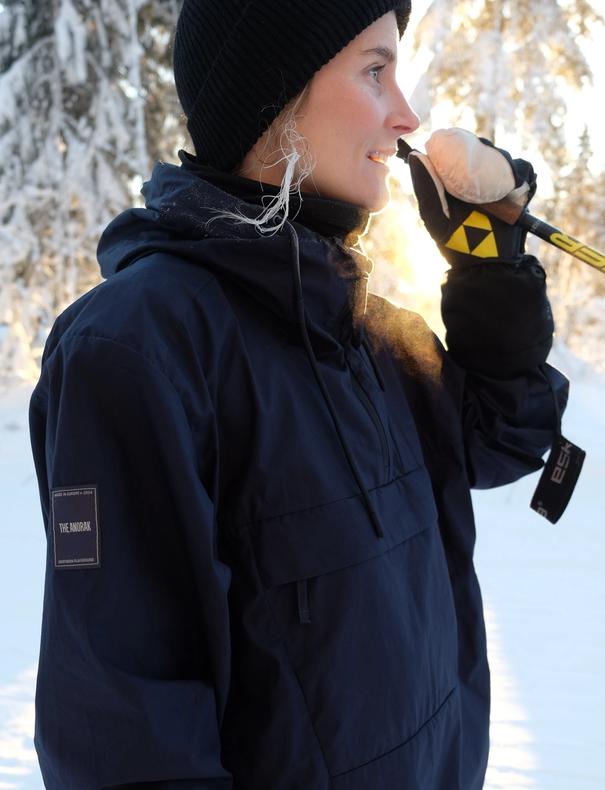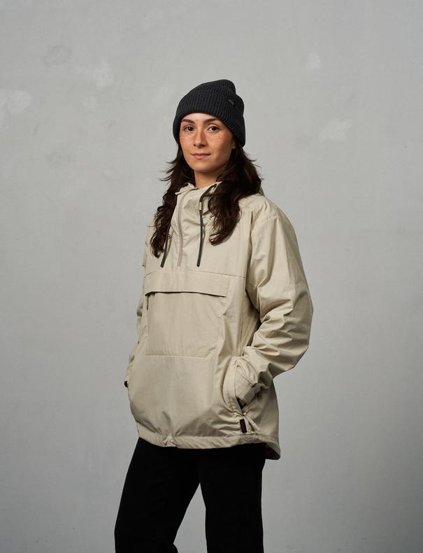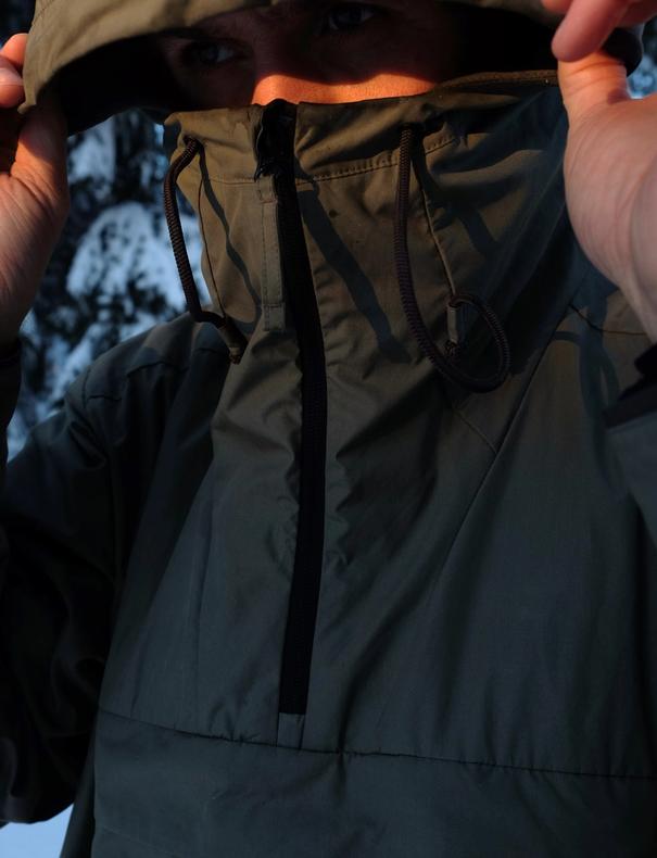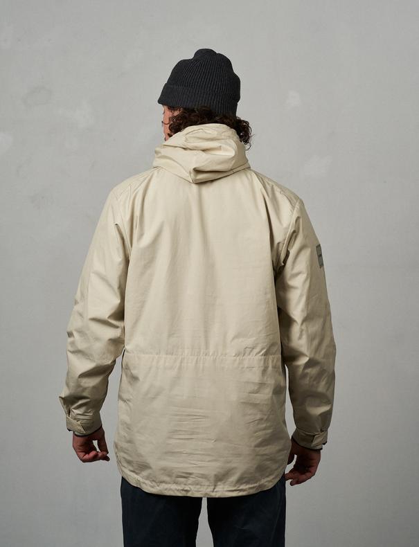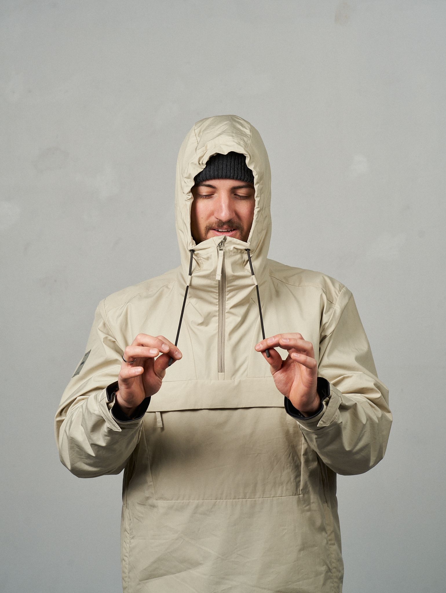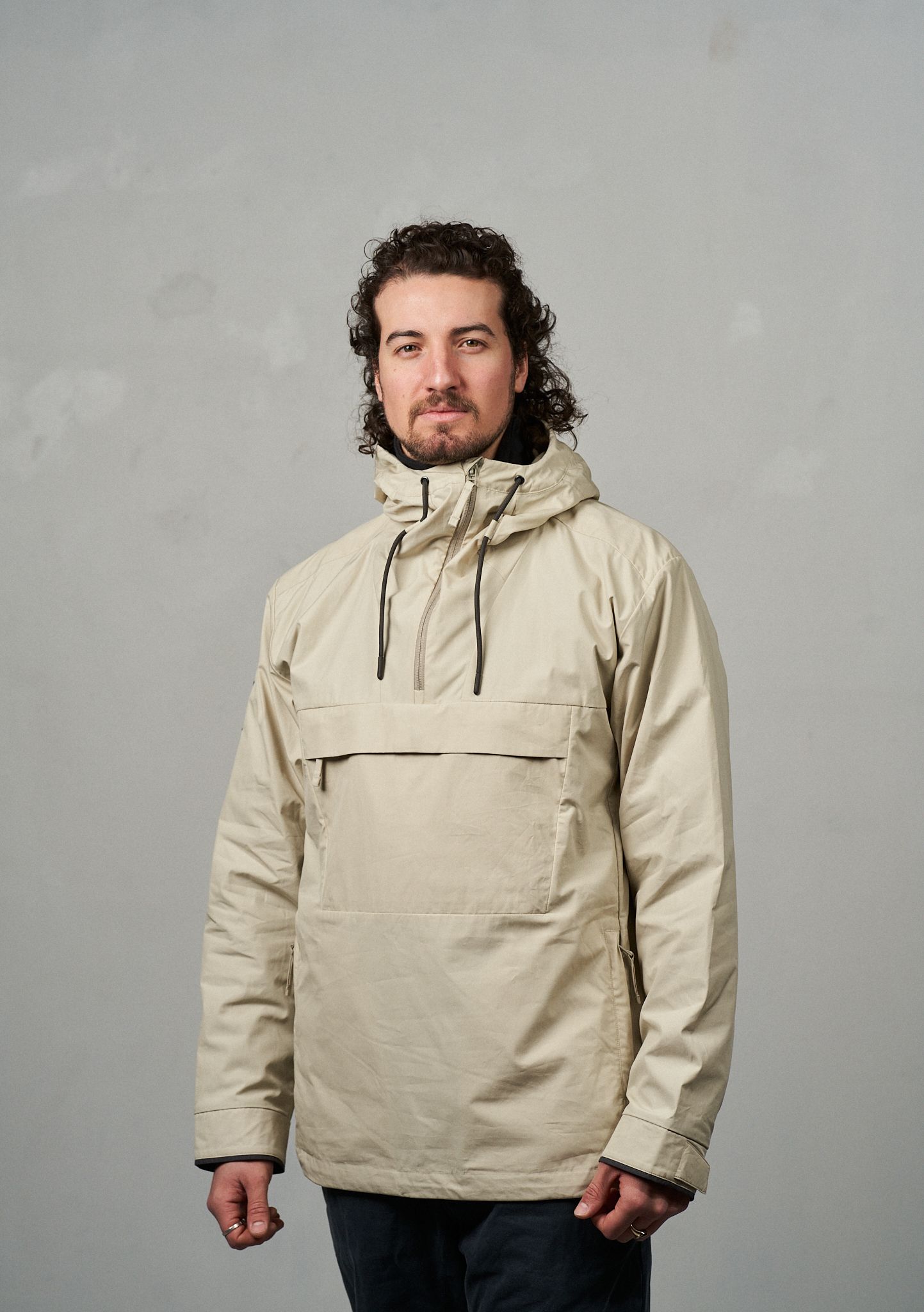Simple, classic, and lightweight anorak. Suitable for cross-country skiing, as a windbreaker during hikes, or as a jacket in the city. Made of lightweight Ventile cotton that provides wind protection and is resistant to light rain. Ample space for extra layers underneath and a spacious hood to shield against the strongest gusts of wind.