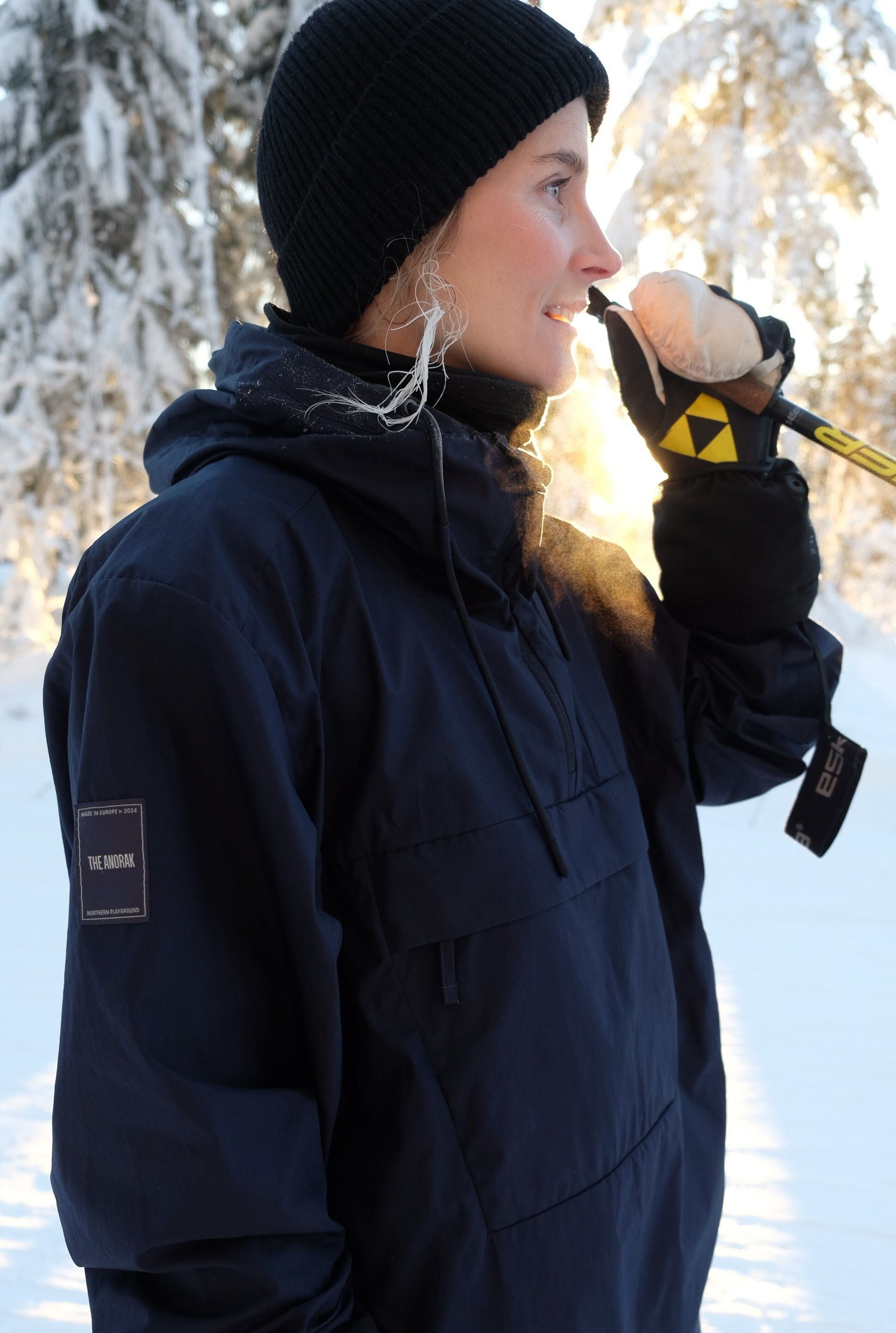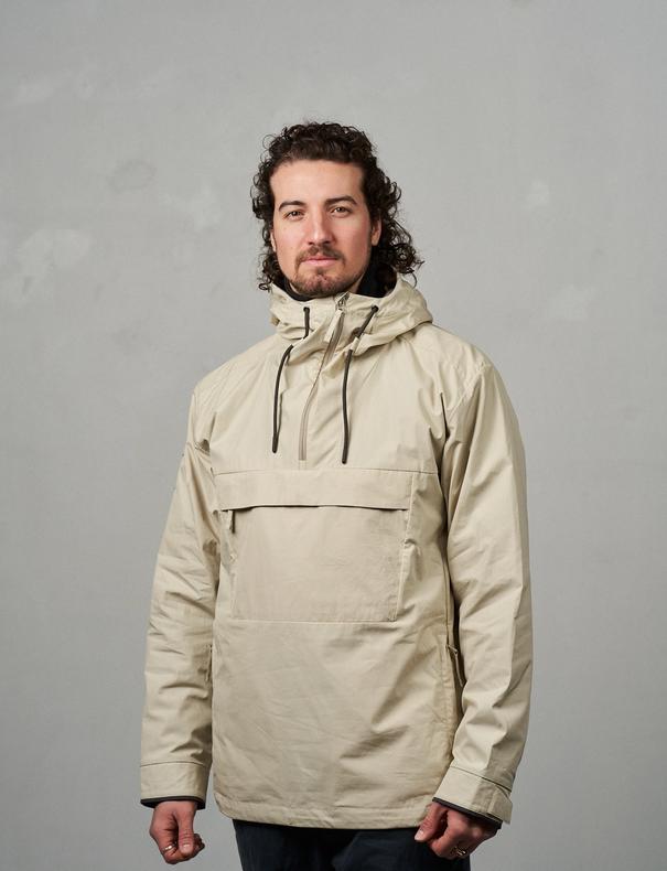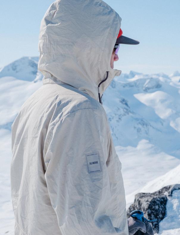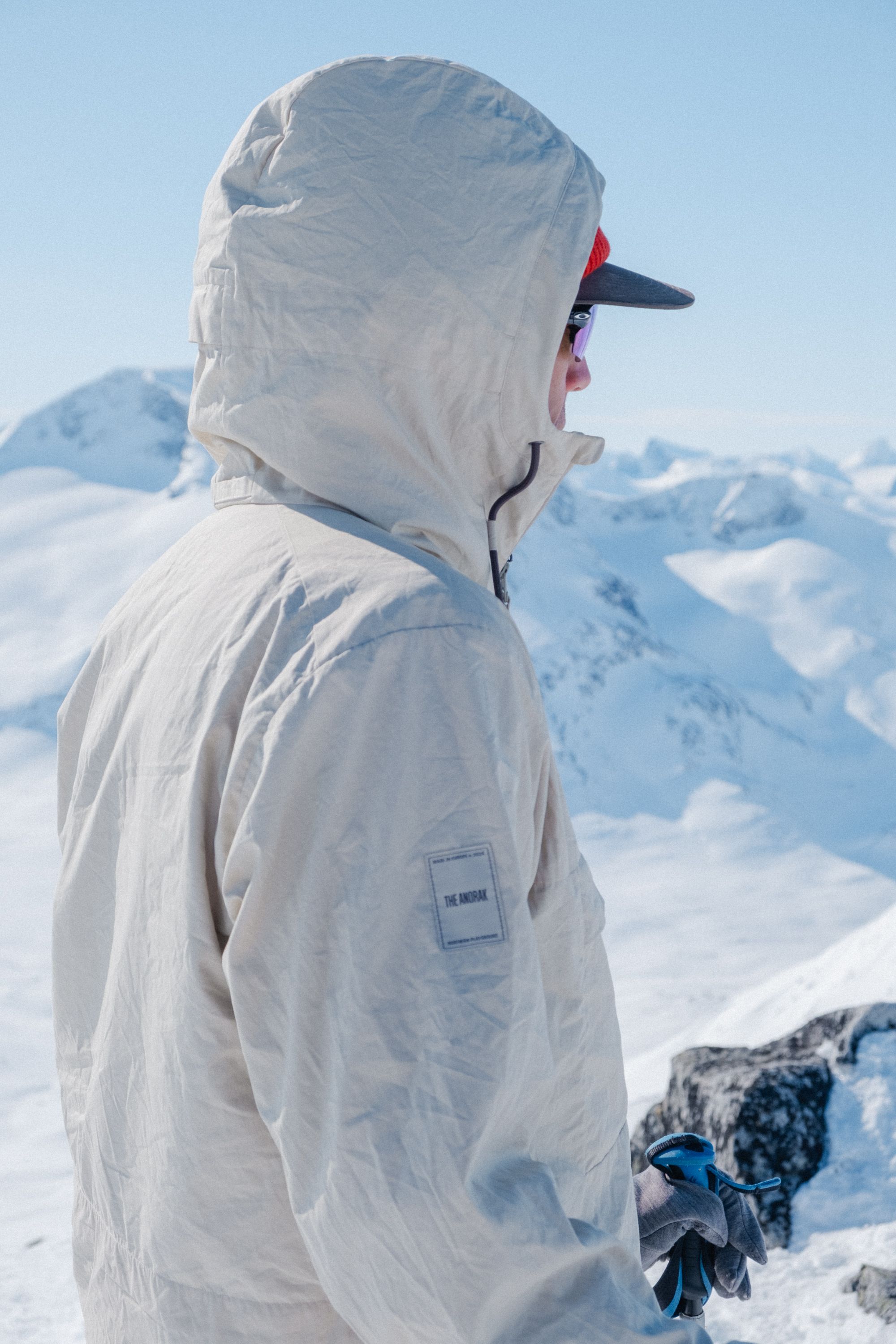 Like all our other products, we have the ambition that you should be able to use this anorak as much as possible, both in summer and winter, and for many, many years. Wear it for skiing, sailing, in the city with a coffee in hand, or when you feel like performing acrobatic tricks. It’s lightweight, packs minimally in your backpack, and takes up very little space. Please note that this is not the jacket for harsh weather trips above the treeline. The key focus during the design phase has been to make it simple, classic, and light – and made from 100% natural fibers. This makes it versatile for almost everything: Moisture is transported out faster, and it looks much better than its cousins in plastic material.