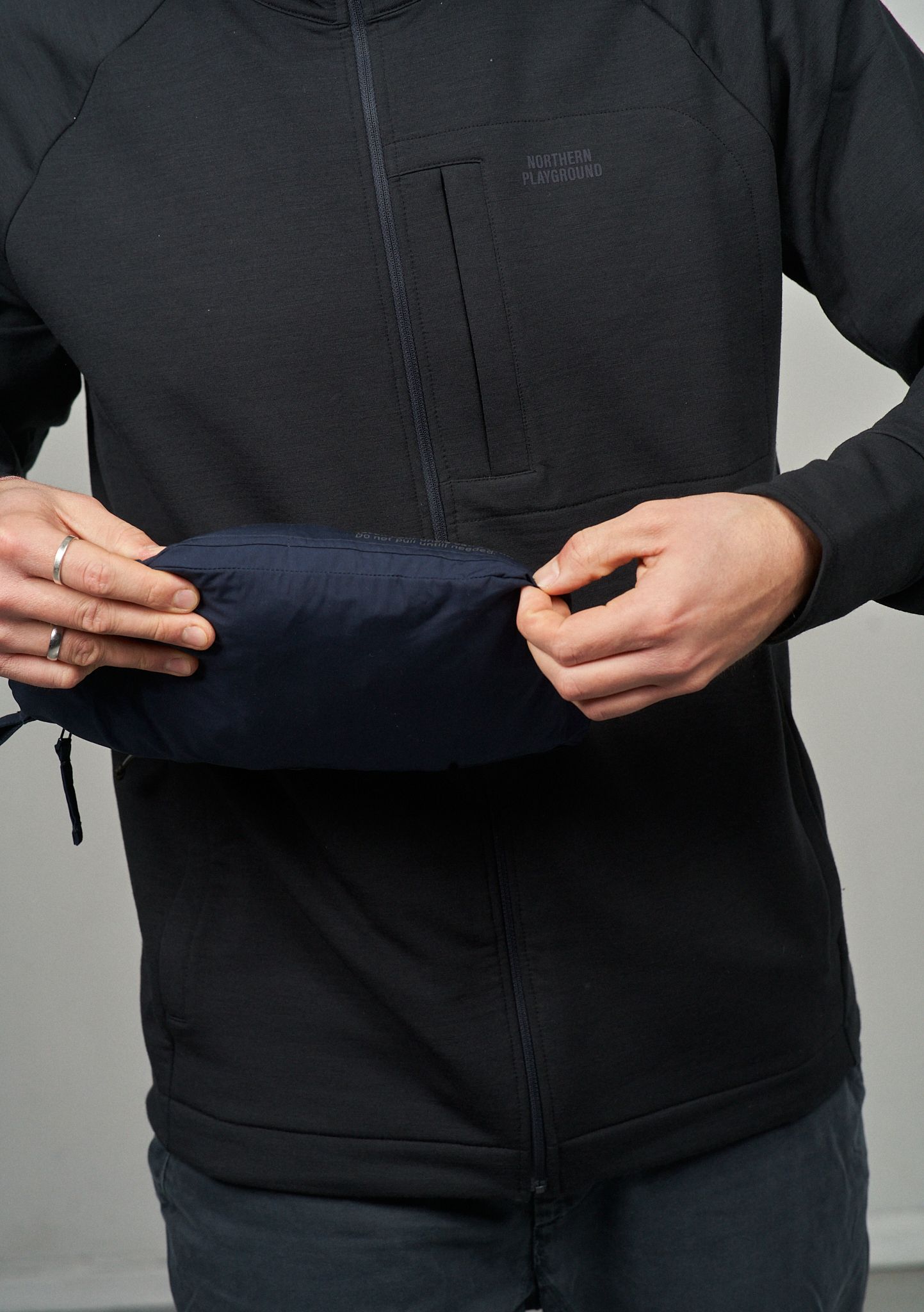 Note that you can easily pack the anorak into itself and use it as a pillow.