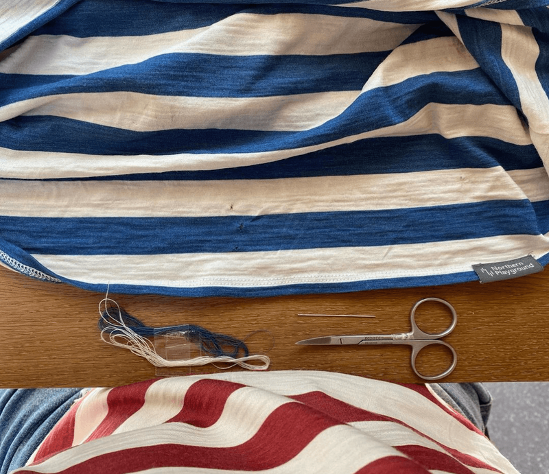 PÄ reparasjonseventyr med begge vÄre stripete t-skjorter.