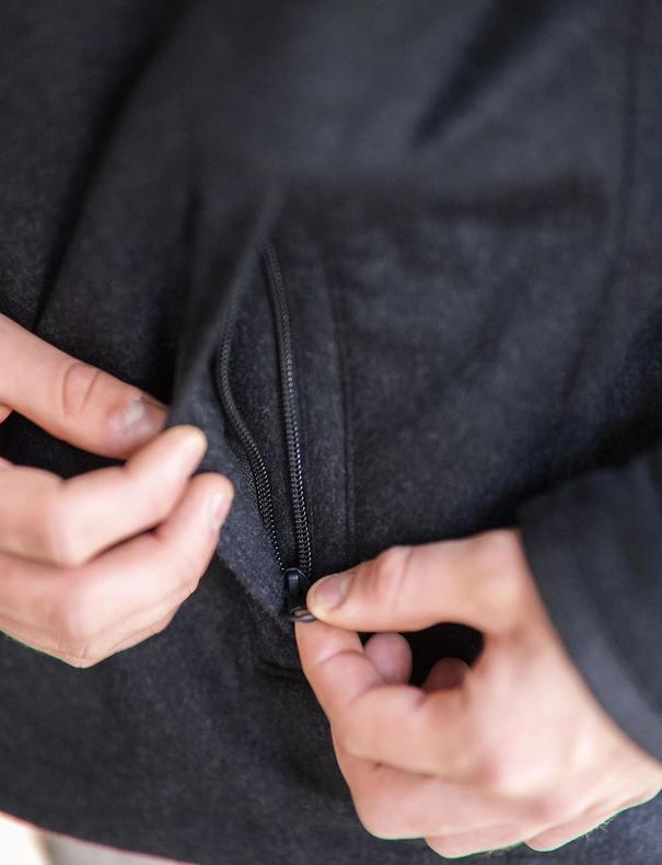 Da vi begynte å leke med tanken om å lage et mellomlag, hadde vi mange retninger å velge mellom. Men vi endte der vi ofte gjør: i skjæringspunktet mellom funksjon og enkelhet. Et plagg du kan bruke hele året – på fjellet, på kontoret eller i Markveien på Grünerløkka. Ullens egenskaper gjør resten: den varmer, puster og tåler svette uten å lukte.
