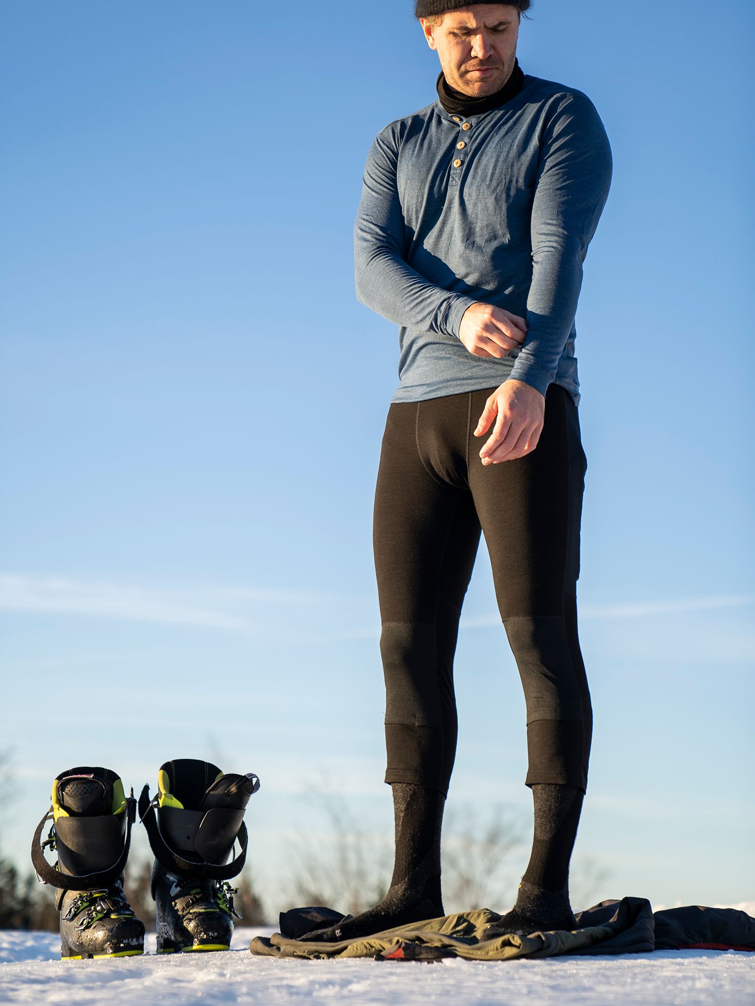 Longs i merinoull med lokalprodusert padding i rumpa for ekstra varme og komfort. Rett og slett magisk i stolheisen og alle andre kalde overflater.