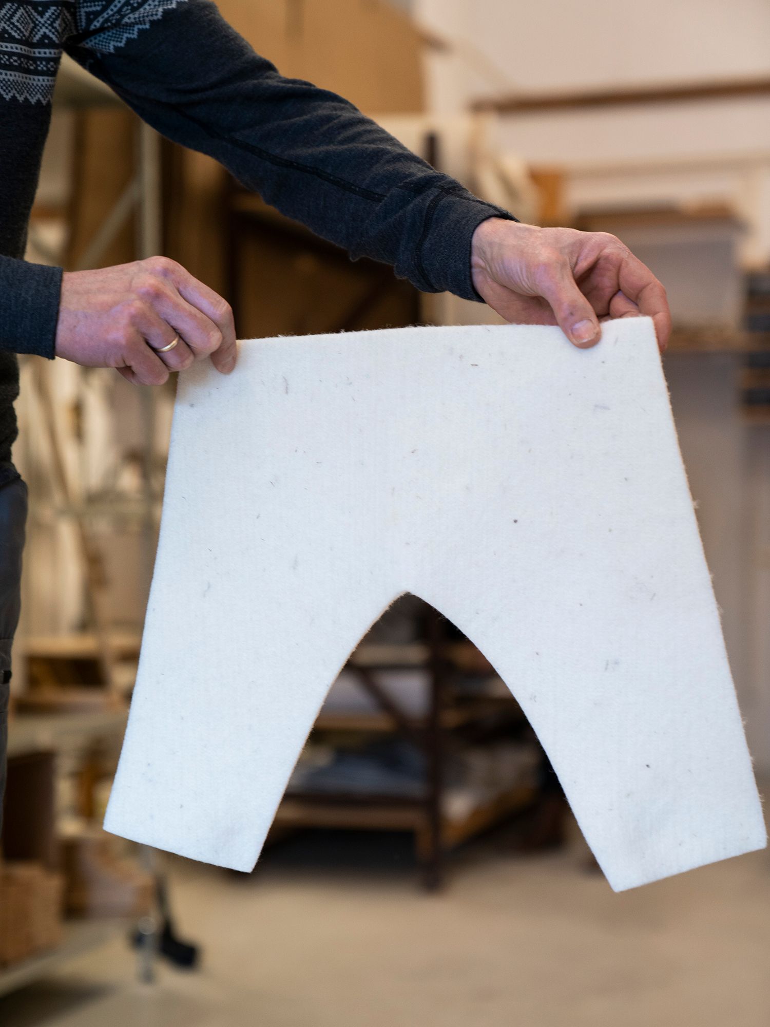 Paddingen er produsert i norsk saueull hos Fredriksens Fabrikk i Telemark. Her blir råull omdannet til filt i en mekanisk prosess, helt uten bruk av vann eller kjemikalier.