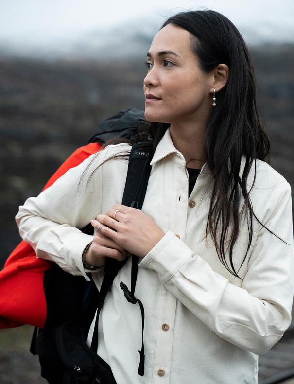 Materialet er det som gjør denne klassiske skjorta helt spesiell. Med sin grovvevde, rå struktur i ren bomull, føles det som å ha naturen rett på kroppen.