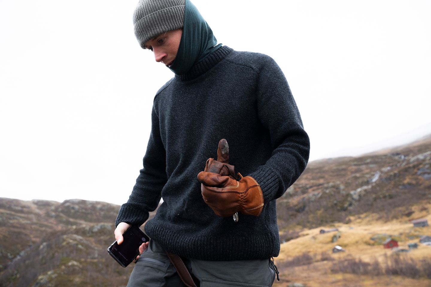Vi savnet en genser som var varm nok til å bruke ute, men fortsatt behagelig inne. Klassisk i snitt, myk mot huden og laget for å vare. Den måtte være formell nok til å bruke over penskjorta og samtidig røff nok til å bruke i nærheten av en hoggestabbe. (men pass opp for rustne spikre som stikker ut av veggen i vedskjulet, dette er en strikkagenser som ikke liker omgang med rustne spikre)