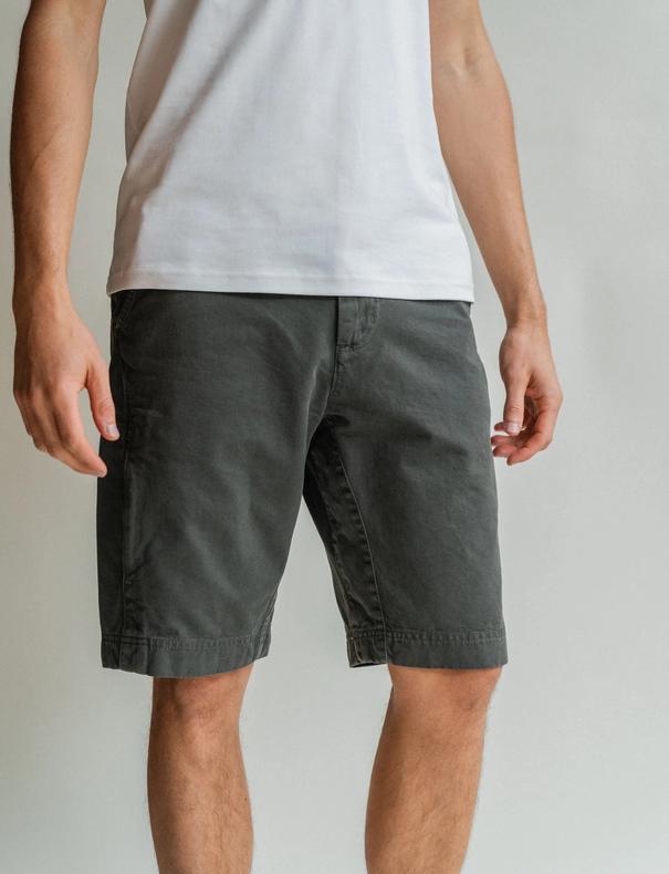 The Shorts er laget av en tykk og kraftig, men samtidig myk og behagelig italiensk bomullskvalitet, med en konstruksjon som gjør den ekstra slitesterk. Sømmene er også sydd sammen av tråd i 100% bomull. Shortsen har to åpne lommer foran, og to bak. I tillegg har den en skjult glidelåslomme på siden med plass til mobiltelefonen din med en hensiktsmessig plassering for å opprettholde et minimalistisk og stilrent uttrykk. Shortsen har en skjult snor på innsiden for enkel justering av livet.