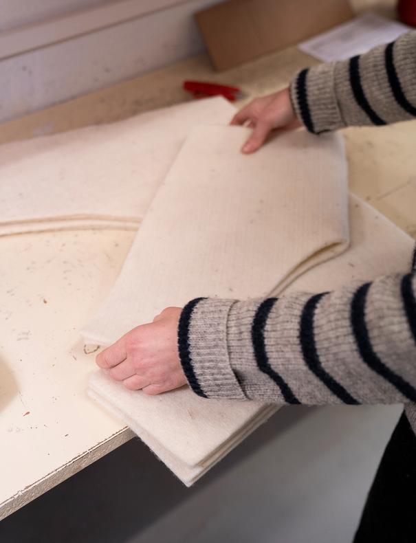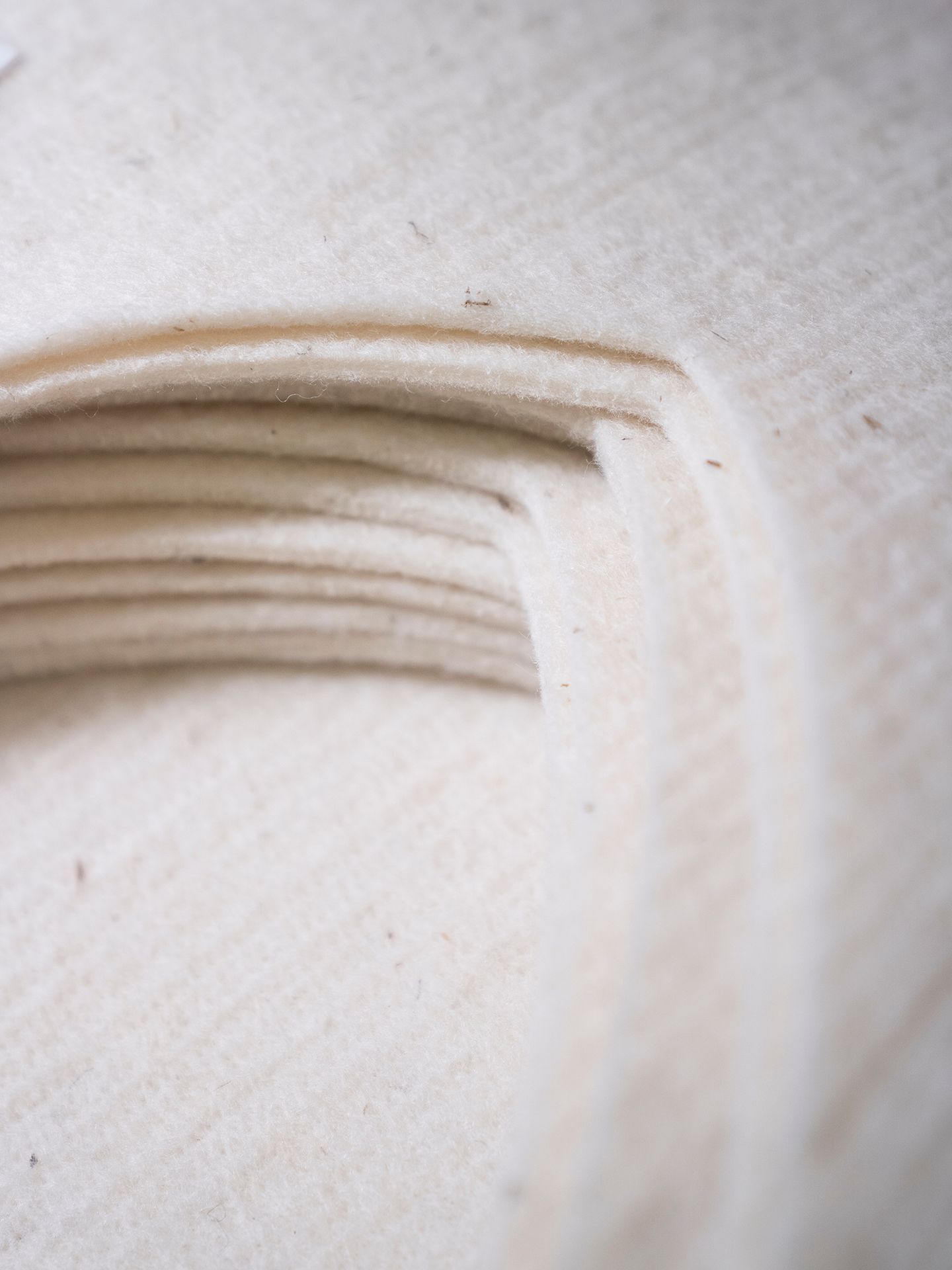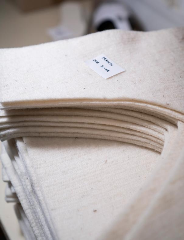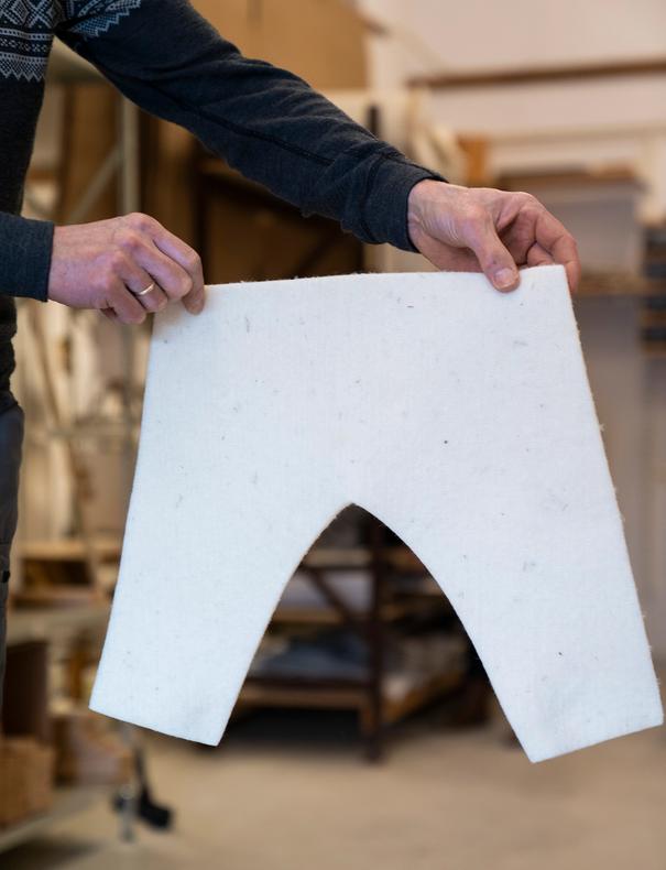 The Wool Padding er produsert i norsk saueull hos Fredriksens Fabrikk i Telemark. Her blir råull omdannet til filt i en mekanisk prosess, helt uten bruk av vann eller kjemikalier.