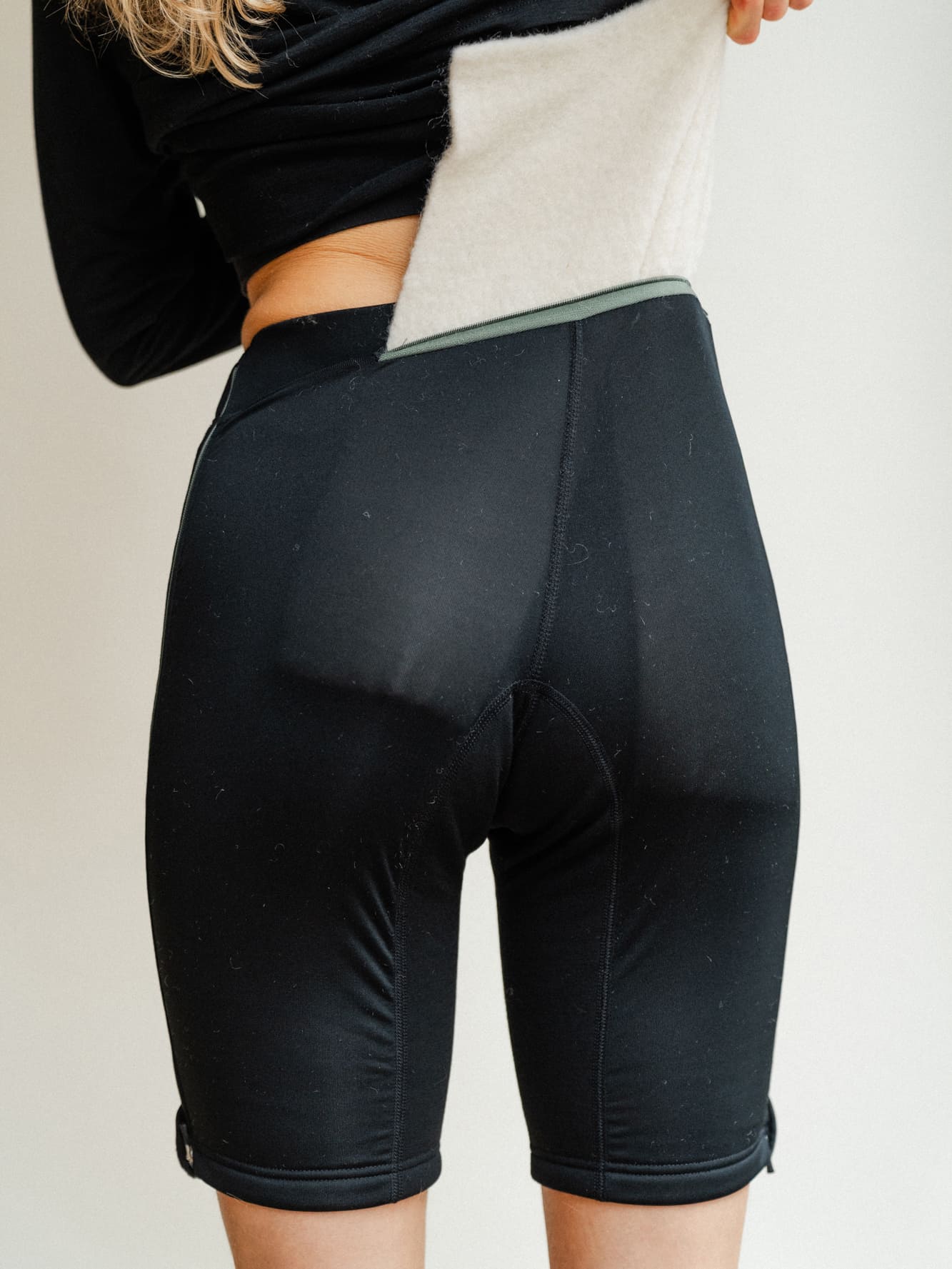 Shortsen har en lomme til ullpaddingen som kan tas inn og ut ved behov. I praksis betyr dette at du har et varmt og komfortabelt "sitteunderlag" innebygd i buksa, og unngår varmetap når du sitter på kalde overflater. Mens dun kan miste isolasjonsevnen når den blir våt eller flat, holder ullpaddingen på denne egenskapen under alle omstendigheter.